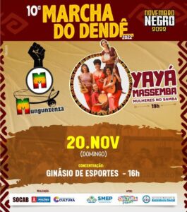 No próximo domingo (20/11), data que é celebrado o Dia da Consciência Negra, acontecerá 10ª edição da tradicional Marcha do Dendê. A concentração será às 16h, no Ginásio de Esportes, seguindo sentido à Praça do Divino, com a apresentação das bandas Mungunzenza e Yayá Massemba – Mulheres no Samba.A Prefeitura de Poções, através da Biblioteca Municipal, deu início na quinta-feira (17), ao projeto “A Biblioteca na copa do mundo