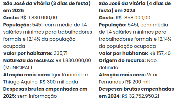 - São José da Vitória: valor equivale a 2,62% das despesas brutas empenhadas