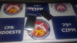 Chegando ao local, o suspeito foi identificado e abordado, sendo encontrados com ele dois aparelhos celulares.