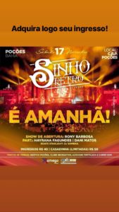 É AMANHÃ SÁBADO DIA 17 GRANDE SHOW SINHO FERRARY RETRO [IMPERDÍVEL ]