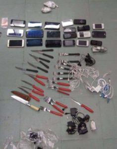 Conforme informações, durante o banho de sol dos presos, os agentes presenciaram uma tentativa de arremesso de objetos para o pátio. De imediato, a equipe conseguiu interceptar o pacote que continha 20 celulares, fones e carregadores, além de garfos e facas que poderiam ser utilizados na fabricação de armas artesanais.