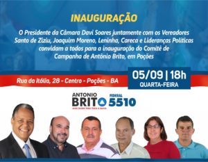 Hoje dia 03/09/2018 foi inaugurado o comitê do DEPUTADO ANTONIO BRITO EM JEQUIÉ BOMBOU