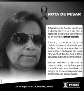 A Prefeitura de Poções manifesta publicamente o seu mais profundo pesar pelo falecimento da ex-servidora Elisabete Reis.
