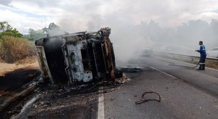 Não há informações sobre o prejuízo causado nem se a carga foi saqueada.