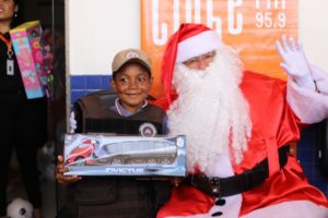 Papai Noel a bordo do caminhão do 7° Grupamento de Bombeiros Militar de Vitória da Conquista chegou na manhã deste sábado (15), para alegrar duas mil crianças atendidas pela Base Comunitária de Segurança, localizada no bairro Nova Cidade em Conquista. Além de brinquedos foram distribuídos pelo ‘Bom Velinho‘ doces e lanches para tornar o Natal da criançada ainda mais especial.