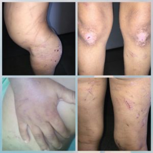 Segundo constatado, a menina vinha sendo torturada há bastante tempo e apresentava lesões por todo o corpo, entre antigas e recentes, praticadas de variadas formas e meios, como castigos físicos (ficar horas de joelho, até lesionar), surras com fios e varas, dentre outros, além de tortura psicológica.