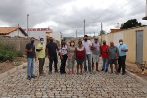 Prefeita de Poções, Nilda Magalhães visita obra de calçamento no bairro Alto do Paraíso