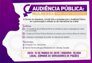 HOJE TEM AUDIÊNCIA PÚBLICA NA CÂMARA MUNICIPAL DE POÇÕES SOBRE A VIOLÊNCIA CONTRA A MULHER PALESTRANTE DR ALEXANDRA DELEGADA TITULAR DE POÇÕES E KARINE FERREIRA BORGES [MESTRADA EM CIÊNCIA SOCIAL NÃO PERCAM A PARTIR DAS 19 HORAS TODOS ESTÃO CONVIDADOS