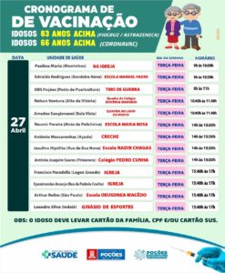 A Prefeitura de Poções, através da Secretaria Municipal de Saúde, vai aplicar, na terça-feira (27/04), as vacinas Fiocruz/Astrazeneca (nos idosos de 63 anos acima) e Coronavac (nos idosos de 66 anos acima) contra a Covid-19, conforme data e horários estabelecidos.BETO AZEVEDO, CONHECIDO COMO BETÃO DA ACADEMIA ART E MOVIMENTO, PARTICIPANTE DO CLUBE PLATAFORMA VERMELHA DO APLICATIVO STRAVA, É O PRIMEIRO ATLETA CLASSIFICADO NA CATEGORIA HOMEM DE FERRO