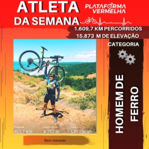 BETO AZEVEDO, CONHECIDO COMO BETÃO DA ACADEMIA ART E MOVIMENTO, PARTICIPANTE DO CLUBE PLATAFORMA VERMELHA DO APLICATIVO STRAVA, É O PRIMEIRO ATLETA CLASSIFICADO NA CATEGORIA HOMEM DE FERRO, POR TER PEDALADO MAIS DE 1.600 KM EM APENAS 7 DIAS.