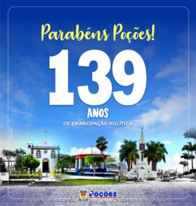 Hoje a terra do Divino está em festa. Nossa querida Poções comemora 139 anos de emancipação política. Como cidadã poçoense, por título concedido e de coração, deixo minha homenagem aos moradores e moradoras deste importante município do sudoeste baiano.