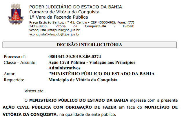 Deferindo o pedido de liminar do Ministério Público da Bahia, o juiz Ricardo Frederico Campos determinou que o prefeito de Vitória da Conquista, Herzem Gusmão (MDB), exonere todos os procuradores do município que estejam atuando em cargos comissionados, no prazo de até 120 dias.